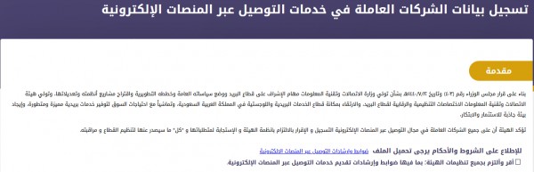 شروط تسجيل تطبيق في هيئة الاتصالات لدي تطبيق توصيل وارغب بتسجيله في هيئة الاتصالات وتقنية المعلومات سوبر مجيب